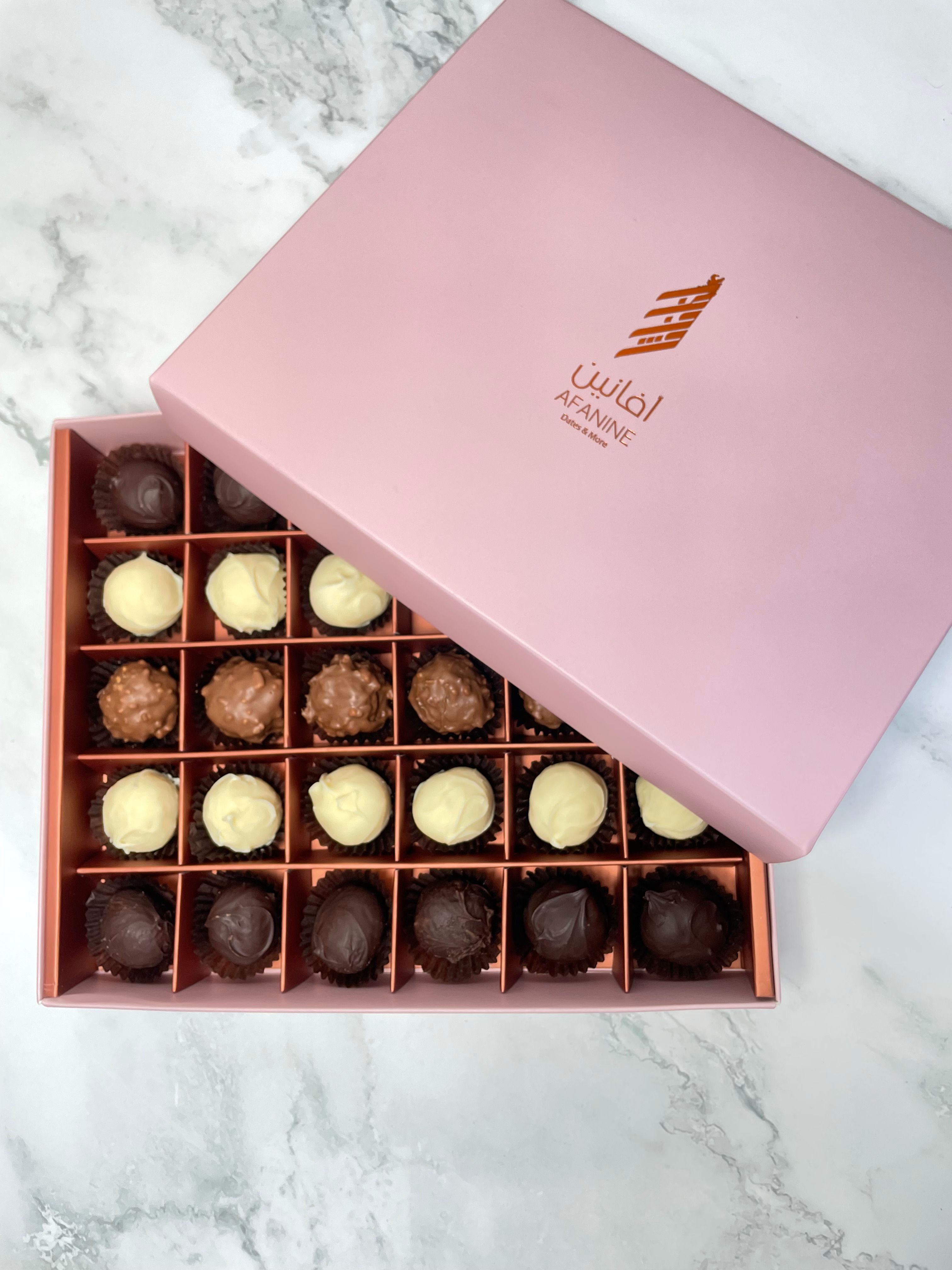 Laissez vous envoûter par la Boîte Charme, un écrin de 30 douceurs où truffes coco, chocolat noir intense et rochers croustillants se rencontrent pour éveiller vos sens. Chaque bouchée est une caresse, un instant de plaisir à partager ou à offrir. Élégance, gourmandise et raffinement se conjuguent pour transformer chaque dégustation en un moment mémorable.